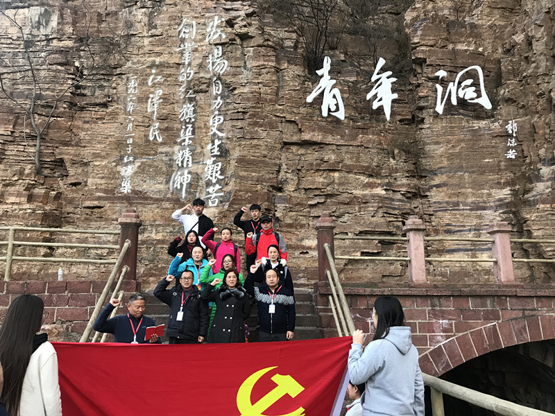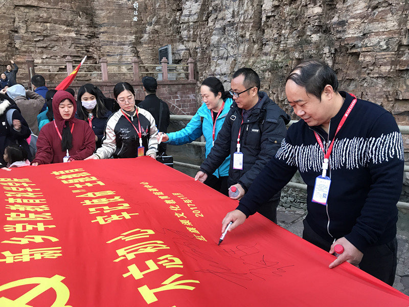 1973年,全國人大常委會(huì)副委員長郭沫若親自題寫了洞名。洞口刻有李先念、江澤民題詞。學(xué)員們集體在洞合影留念,并重溫入黨誓詞。