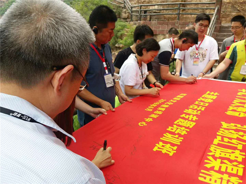 通過一路的辛苦攀登學員來到了青年洞,并在紅旗渠水的見證下,重溫入黨誓詞。