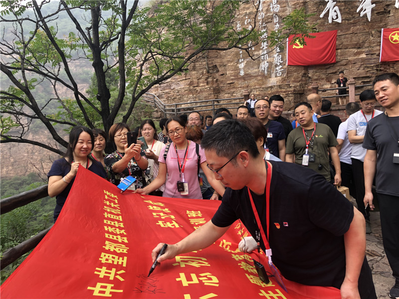 學(xué)員們首先進(jìn)行了開班儀式,對(duì)本次學(xué)習(xí)進(jìn)行了莊嚴(yán)宣誓,通過這次學(xué)習(xí),一定會(huì)提升黨性修養(yǎng),學(xué)有所獲。微信圖片_20190715104527    學(xué)員們首先來了谷文昌生平事跡展覽館,谷文昌同志是人民的好公仆、干部的好榜樣。在幾十年的工作生涯中,他牢記宗旨、一心為民、艱苦奮斗、廉潔奉公,為黨和人民的事業(yè)貢獻(xiàn)了畢生心血,并被習(xí)近平總書記稱為“四有”書記,即“心中有黨,心中有民,心中有責(zé),心中有戒”。微信圖片_20190715104532    紅旗渠紀(jì)念館是一座收藏,研究,展示,傳承紅旗渠歷史的一座展館,展出了2000多件珍貴實(shí)物用于輔助于現(xiàn)在的現(xiàn)場教學(xué),學(xué)員們來到了這里進(jìn)行現(xiàn)場和理論教學(xué),通過講解員的講解,認(rèn)識(shí)到在上世紀(jì)五六十年代,在那么困難的時(shí)期,林縣人民是怎樣自力更生完成的那么浩大的工程,在參觀了分水閘后都對(duì)林縣人民的聰明才智贊不絕口。并合影留念。微信圖片_20190715104606    經(jīng)過近2個(gè)小時(shí)的艱難跋涉,到達(dá)紅旗渠總干渠的咽喉工程之一青年洞,因參加鑿洞的突擊隊(duì)是從全縣民工中抽調(diào)出來的300名青年,故而得名。突擊隊(duì)在修建過程中住山崖,睡石板,頂風(fēng)冒雪,抗寒戰(zhàn)暑,不但毫無怨言,還在崖壁上留下了“崖當(dāng)房,石當(dāng)床,虎口崖下度時(shí)光,我為后代創(chuàng)大業(yè),不成大渠不還鄉(xiāng)”的豪邁誓言。